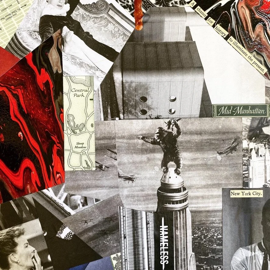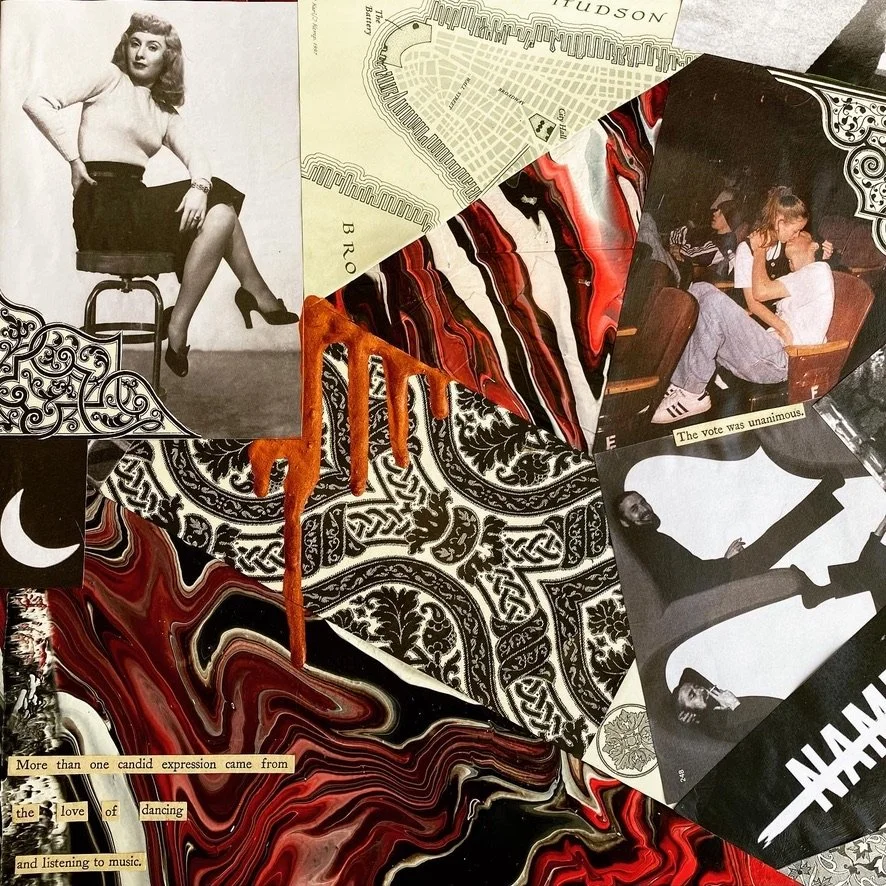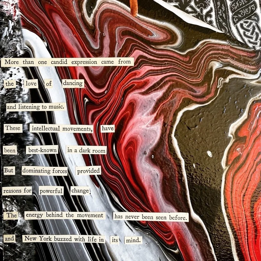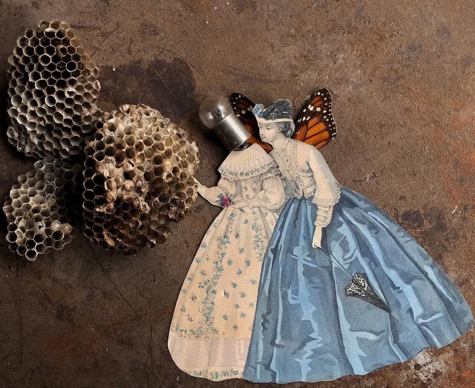 Resin, Alcohol ink and various found materials on recycled glass and mirrors. The coloring and texture is meant to resemble topography that the found material is attempting to navigate.